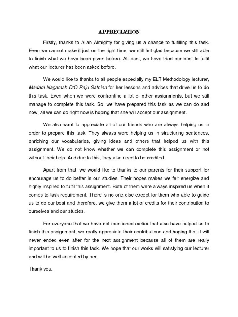 Example Appreciation For Assignment / Daily Posts 44 Sample Gratitude Letter To Boss. On a clean sheet of paper, write a letter to your favorite author. Example learning skills report card comments. An example of this is the simulated laboratory where a true practitioner is hard to construct. Looking for something less formal than the example above? Oct 03, 2018 · appreciation makes them happy and criticism opens the doors of improvement that would help in studies and give better outcomes in next time when working on an assignment. Teachers spend their time unfalteringly investing their time and resources for the academical, intellectual and moral growth of the children.